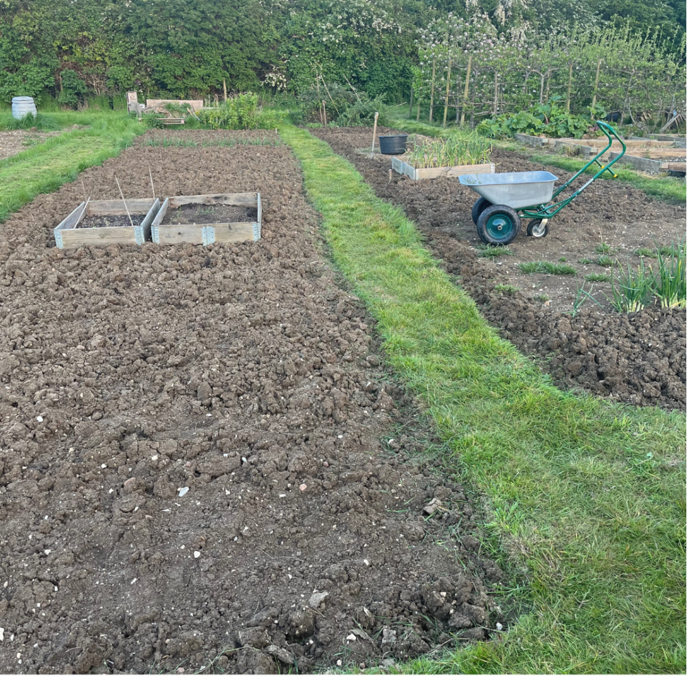 I have found that if you get a new overgrown plot rather than trying to dig out couch grass nettles etc try to cover the plot with black plastic and cardboard as much as possible. Then you can concentrate on clearing a small patch in order to sow seeds of put in plants . If you can get some old pallets or wood to build a compost bin or two whilst the plastic deprived light and moisture to the weeds. You will have somewhere to put weeds to break down later to make compost fir next season. Try to out the bin in a sunny and warm spot rather than in shade this will greatly help the compost too break down into usable material fairly quickly. Try to always keep the compost damp to help it to break down. Dry material will take forever to form good usable compost. Civer the bins with plastic in order to prevent it from drying out... Good luck to you.